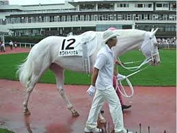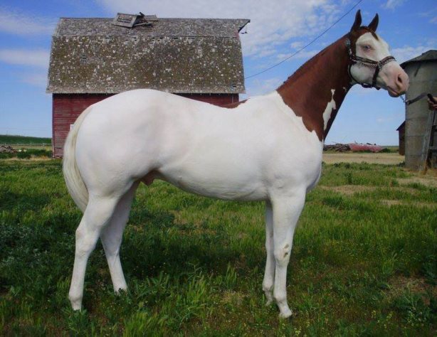 Grundfarven hos brogede heste er enten rød, brun, sort osv - det er de hvide plamager, der gør den broget, så det er ikke en hvid hest med farvede pletter.