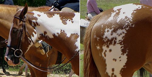Størstedelen af de heste, der er i Dansk Pinto Forening er Tovero og de fleste er en blanding af Tobiano og Sabino. Men der er selvfølgelig også lidt Splash White og Overo i nogle af dem.